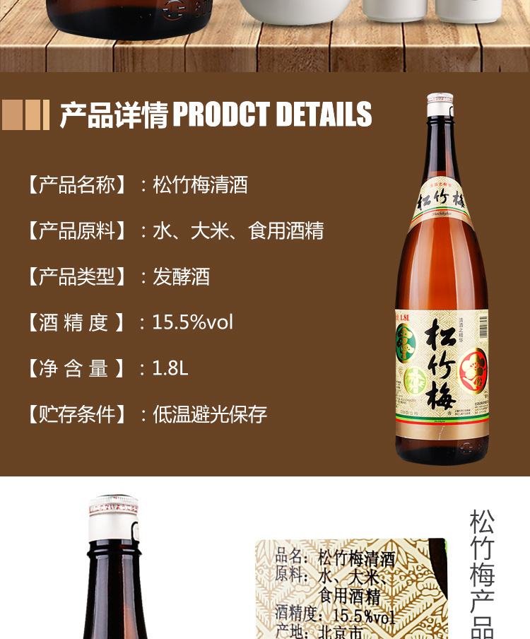 松竹梅清酒口感醇香清爽,常饮不腻,温冷饮用皆适宜。酿造过程由日本宝酒造选派经验丰富的技术人员驻厂全程监制,确保松竹梅清酒的品质
